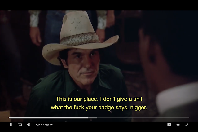 In the 42 minute after talking the Bartender of the film he is is call a "Nigger".